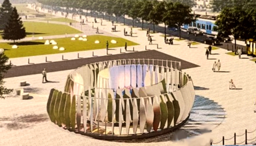На месте торговых павильонов появятся места отдыха, освещение и арт-объект «Доисторическая ракушка». На рисунке-визуализации видно, что она будет выполнена в виде зеркального лабиринта, схожего с раковиной аммонита, вымершего моллюска. В завитках будет предусмотрена подсветка, сообщает портал «В курсе. ру».