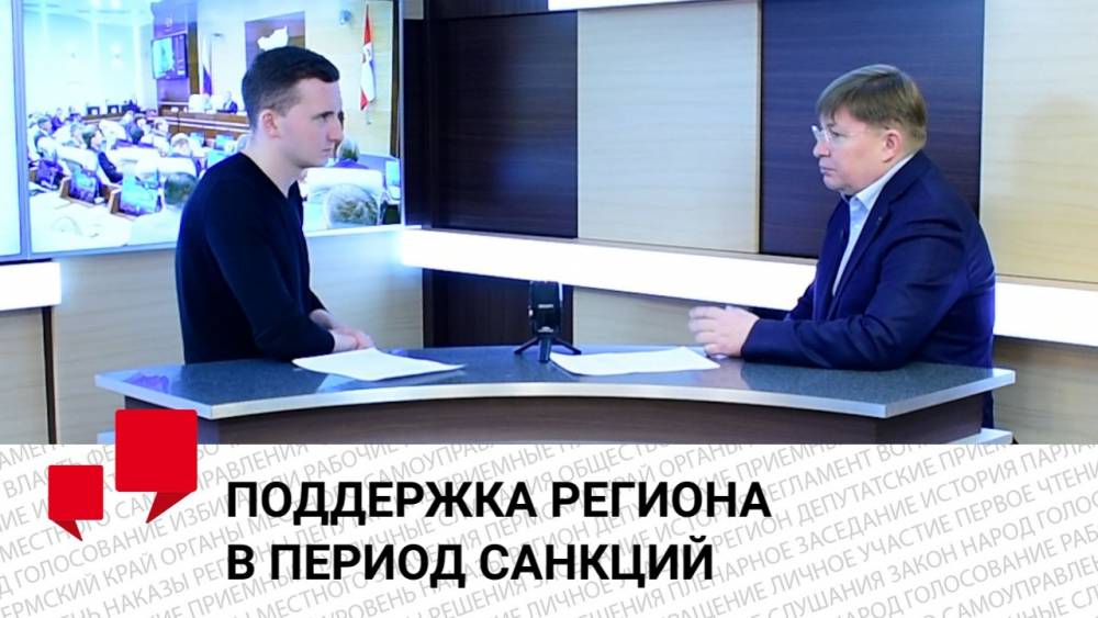 Первый заместитель председателя Законодательного Собрания Пермского края Вячеслав Григорьев дал интервью «Парламентскому телевидению». Он рассказал о мерах региональной поддержки граждан и бизнеса в условиях санкций, а также об особенностях законотворческой деятельности в непростых условиях.
