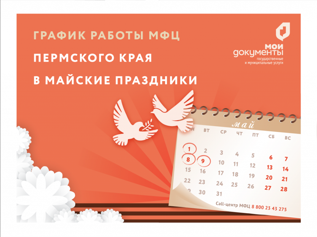 Стал известен график работы МФЦ Пермского края в майские праздники