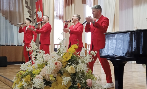 Концерт продолжили гости из Перми - вокальный ансамбль «Rosso», в составе которого поют четыре солиста, лауреата международных и всероссийских вокальных конкурсов. Они поразили зрителей уникальным многоголосьем и артистизмом, придали известным песням поразительное звучание.