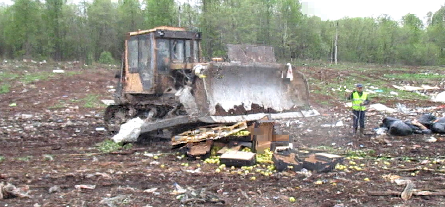 В итоге вся продукция была вывезена и уничтожена на полигоне ТБО. Яблоки раздавили техникой.
