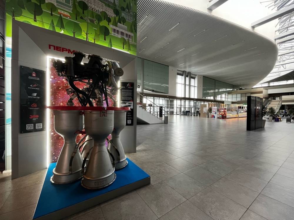 В пермском аэропорту Большое Савино предприятие «Протон-ПМ» разместило ракетный двигатель РД-214, с которого началась история компании. Двигатель размещен в общем зале и будет выставляться там до конца юбилейного года. Об этом сообщает пресс-служба Пермского аэропорта.