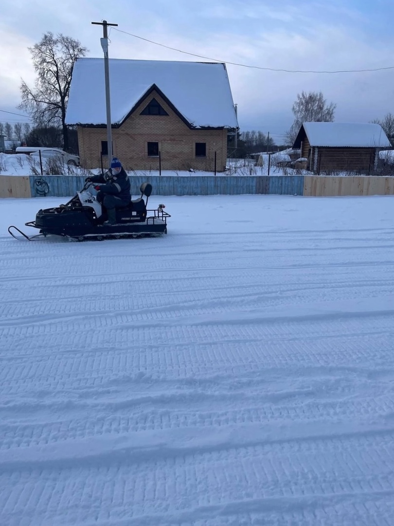 В селе Моховое с наступлением морозов приступили к заливке катка! Борта хоккейной коробки отремонтированы, основание тщательно уплотнено – всё готово для заливки первого слоя льда.