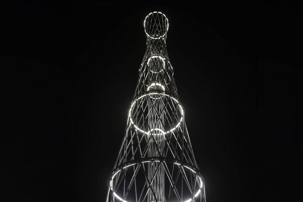Презент высотой в 25 метров создан по образу и подобию «Шуховской башни на Оке», уникальной линии электропередачи, созданной по проекту инженера Владимира Шухова в 1929 году. Возвышается пермский аналог на кольцевой развязке улиц Красина, Куфонина и Строителей, рассказали в пресс-службе Правительства Пермского края. Открыли его вчера главы Прикамья и Нижегородской области – Дмитрий Махонин и Глеб Никитин, которые «зажгли» на башне подсветку в цветах российского триколора.