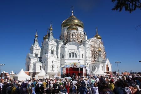 На территории Белогорского монастыря 12 августа было многолюдно. Много кунгуряков, гостей из Перми и близлежащих городов и сёл приехали на юбилейный фестиваль православной культуры. Все стоянки для транспорта заняты, «серпантин» из автомобилей вдоль дороги растянулся на несколько километров.