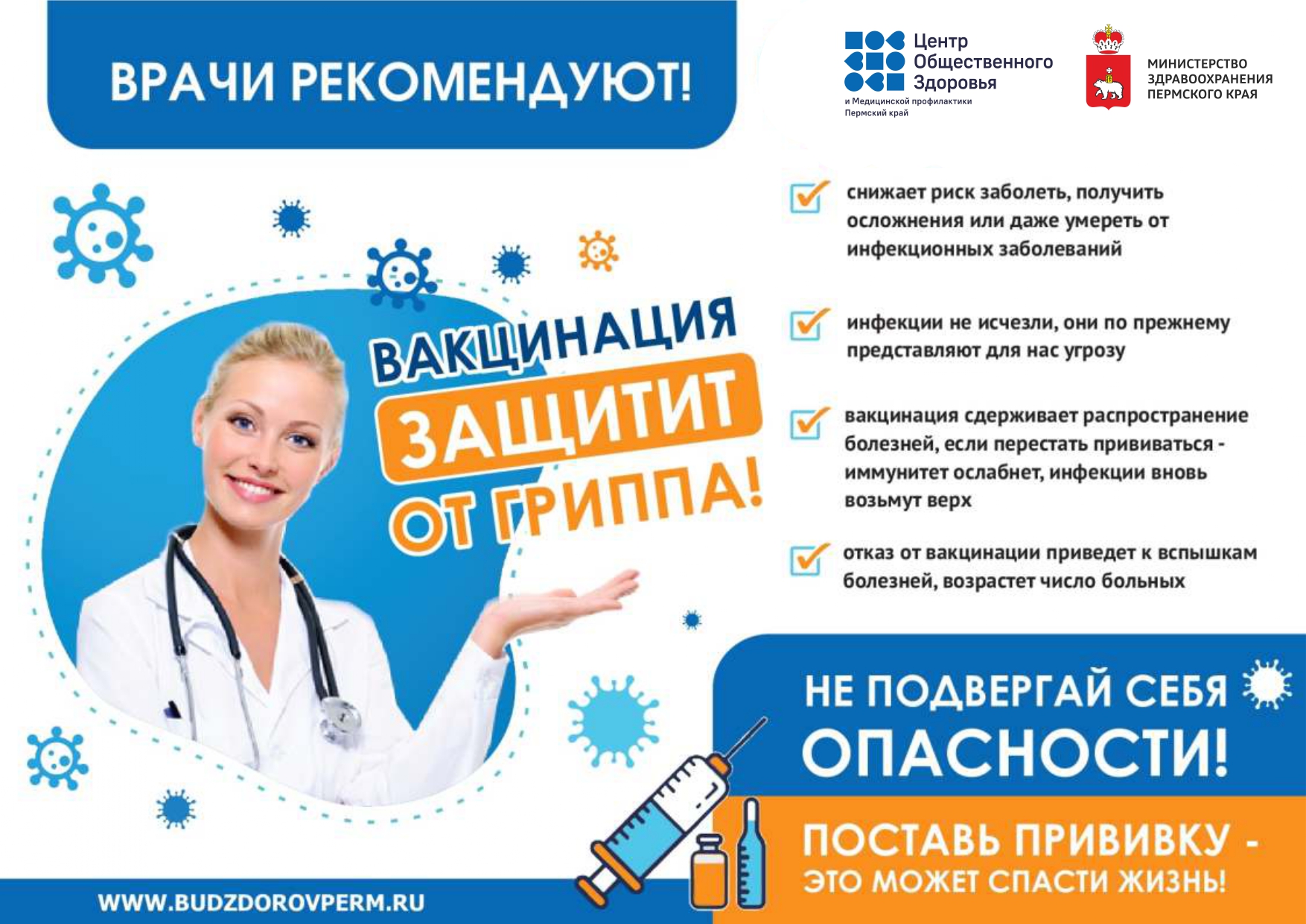 ГБУЗ ПК «Центр общественного здоровья и медицинской профилактики» напоминает, как важна вакцинация от гриппа - основной способ сохранить здоровье в приближающийся эпидемический сезон