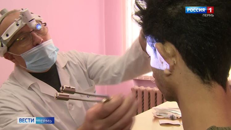 С помощью камертона специалист определяет восприимчивость уха к звукам. У сегодняшнего пациента – студента из Египта – врожденная патология. По различным причинам его ушная раковина не сформировалась, а значит, слух нарушен.