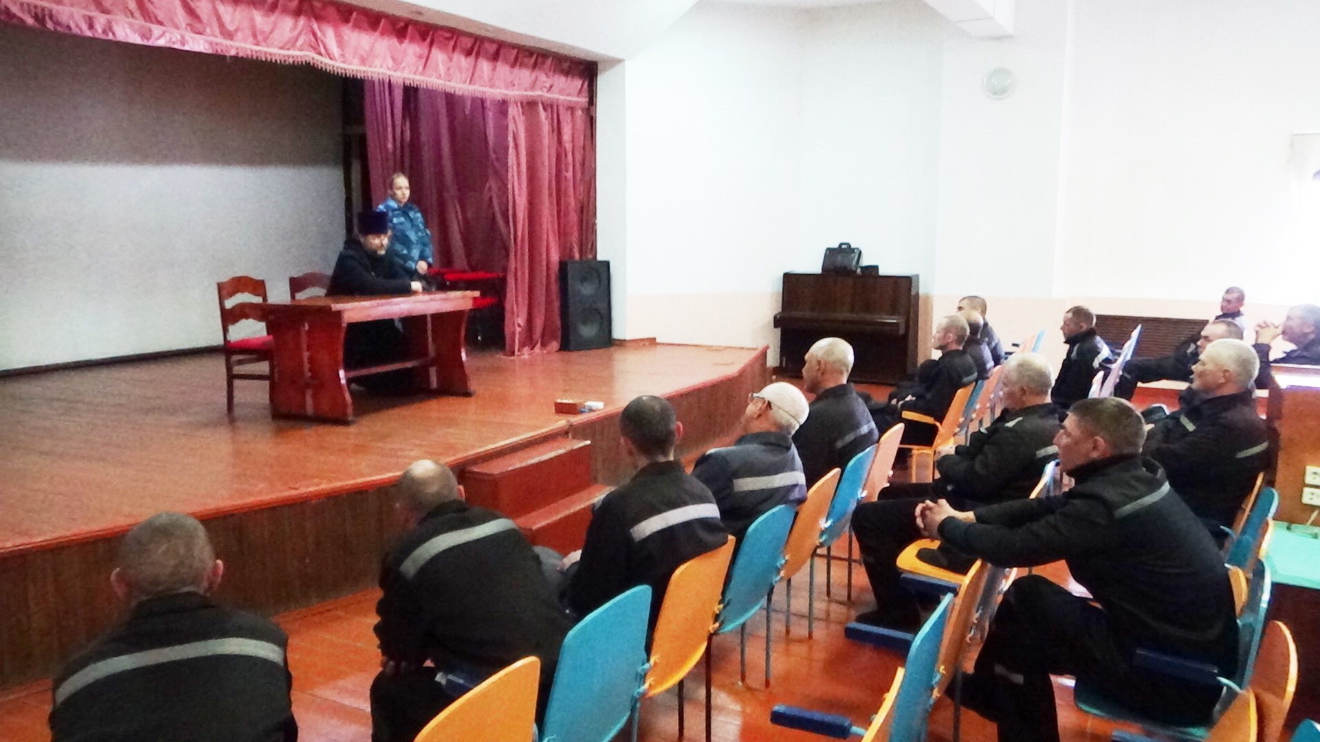В исправительной колонии №10, расположенной в поселке Всесвятская, старший психолог психологической лаборатории Екатерина Спирина и священник Сергий Горбов, духовно окормляющий учреждение, провели психопрофилактическое мероприятие «Спаси свою душу от агрессии».